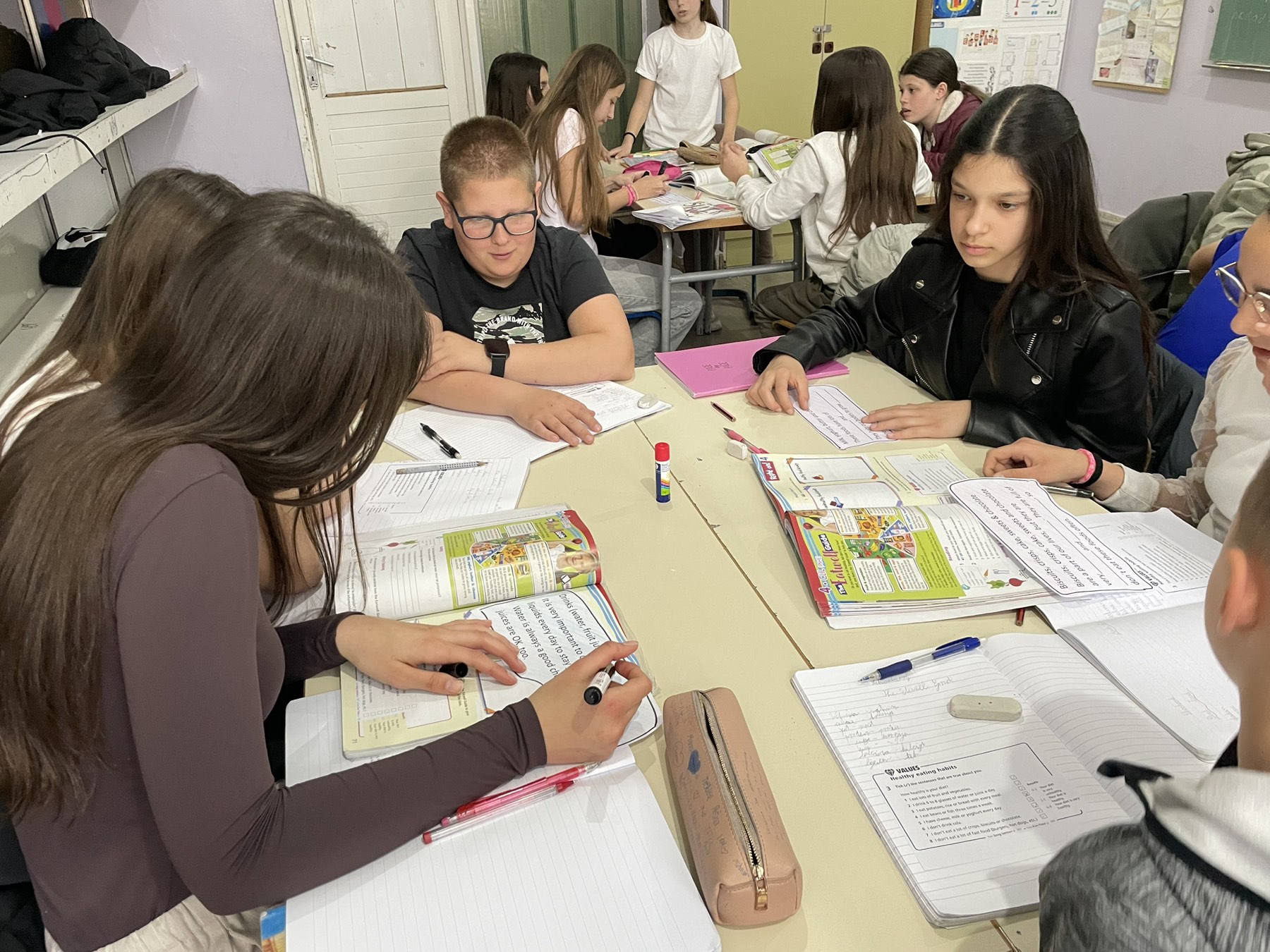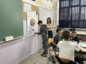 Tema sata bila je prehrana. Učenici su radom u skupinama te međusobnom interakcijom i interakcijom s nastavnicom ostvarili zadane ishode učenja. Radom na upitniku o vlastitoj prehrani iznosili su stavove o svojim prehrambenim navikama i komentirali ih.