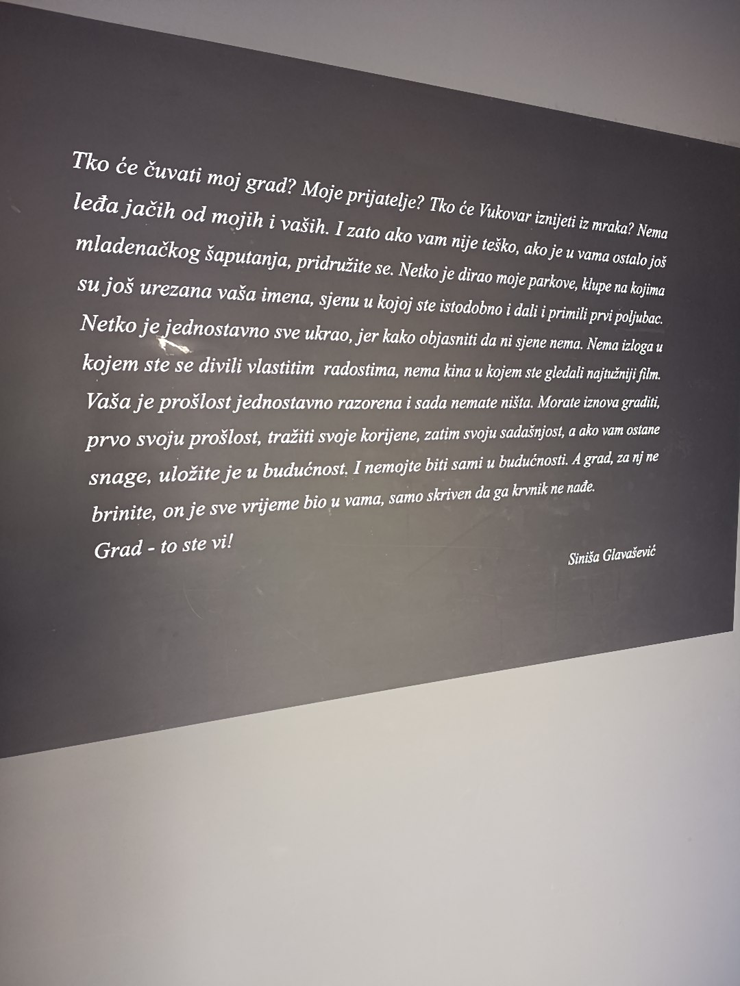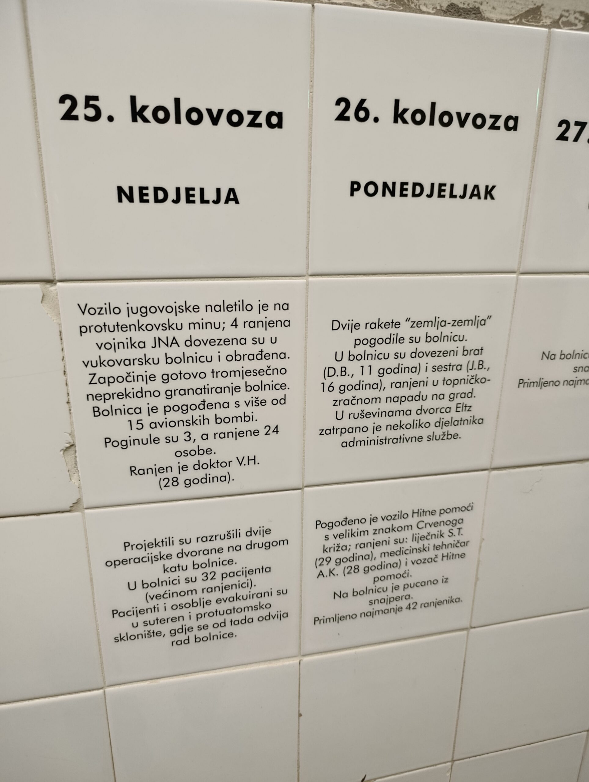 Tom prilikom u pratnji zapovjednika gosp. Batinića obišli su Sajmište, odnosno bivšu vojarnu u kojoj im je objašnjavano kako su tekle borbe, s čime su vukovarski branitelji raspolagali i kakve su strahote prošli prije i nakon pada grada. Prije toga učenicima je održano odlično povijesno predavanje kroz koje je profesorica upoznala učenika sa stanjem u bivšoj državi kako bi bolje shvatili zbog čega je došlo do Domovinskog rata, a nakon toga prešla je na detaljnu analizu bitke za Vukovar. Poslije Sajmišta učenici su obišli Muzej vučedolske kulture, Muzej grada Vukovara – dvorac Eltz i crkvu sv. Josipa i Jakova.