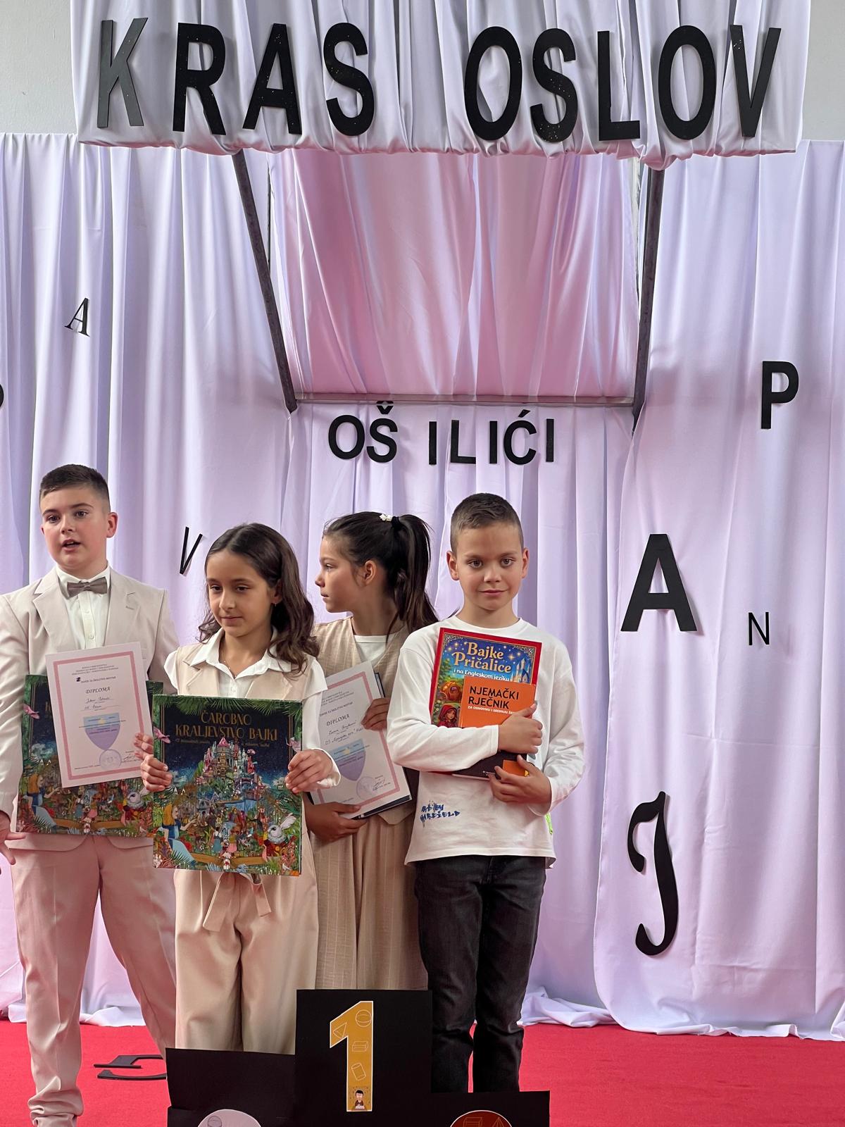 Danas je u Osnovnoj školi Ilići održano županijsko natjecanje u Krasnoslovu, a u njemu sudjeluju učenici i učenice četvrtih razreda. Našu školu predstavljala je Leona Brajković koju je pripremala učiteljica Ksenija Brajković. Upravo je Leona proglašena najboljom, te će naša škola dogodine opet biti domaćin županijskog natjecanja u Krasnoslovu. Ovom prilikom čestitamo Leoni i učiteljici Kseniji.